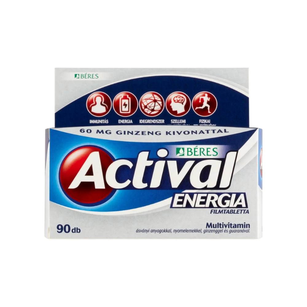 Az Actival Energia filmtabletta komplex étrend-kiegészítő multivitamin ásványi anyagokkal, nyomelemekkel, ginzenggel és guaranával. Tartalmazza a legtöbb vitamin, ásványi anyag és nyomelem napi szükséges mennyiségét, ezáltal hozzájárul a jó közérzet és teljesítőképesség fenntartásához, az ellenálló képesség megőrzéséhez.