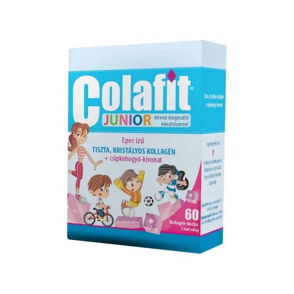 A Colafit® Junior kockák I. típusú kristályos kollagént tartalmaznak, csipkebogyó-kivonattal. A kollagén az ízületek, porcok, kötőszövetek, csontok, bőr, fog és a köröm természetes összetevője.