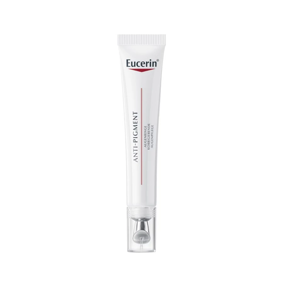 Az Eucerin Anti-Pigment szemránckrém többféle erőteljes hatóanyagot tartalmaz, amelyek mindegyike másképpen segíti a bőr ragyogóbbá tételét és a hiperpigmentáció csökkentését. A termék világosabbá és simábbá teszi a szem környékét. A friss és könnyű formula egy hatékony, szabadalmaztatott hatóanyagot, Thiamidolt tartalmaz, amely a hiperpigmentáció kiváltó okára hatva csökkenti a melanintermelést. A fényvisszaverő pigmentek ragyogóvá teszik a szemkörnyéket, így a bőr megjelenése azonnal frissé és üdévé válik. A hialuronsav csökkenti a puffadást és kisimítja a finom ráncokat. Az oligopeptidek támogatják a bőr kollagénhálózatát, és ennek köszönhetően a bőr szerkezete megerősödik.
