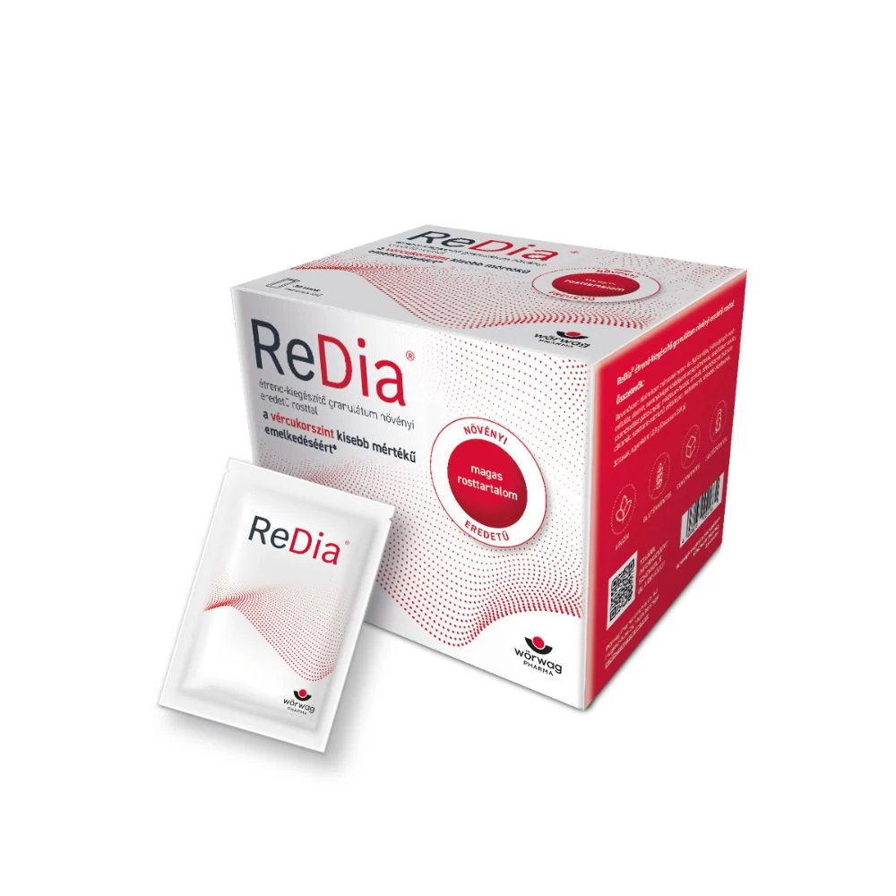 - Naponta egyszer, 20 perccel a főétkezés előtt. Egy tasak ReDia® tartalmát öntsük egy üres pohárba.