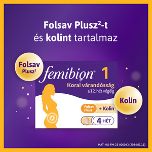 Annak érdekében, hogy megfeleljen a megnövekedett igényeknek és a kisbabád egészséges fejlődésének támogatása¹ érdekében, a Femibion 1 a Folsav Plusz² (²folsav és L-metilfolát) mellett kolint, vitaminokat és ásványi anyagokat tartalmaz. Emellett egyéb válogatott összetevőket is tartalmaz a tested várandósság alatti támogatásához¹, beleértve a vasat, a magnéziumot és a D-vitamint.