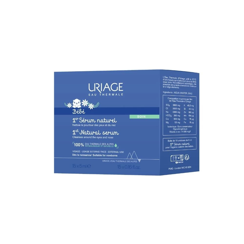 Az Uriage termálvíz a Francia Alpok termálvize, mely fiziológiás tulajdonságú és 100%-ban természetes. Kíméletesen tisztítja és nyugtatja a csecsemők és kisgyermekek szem és orr körüli területeinek érzékeny bőrét. Az Uriage termálvíz összetétele kivételesen gazdag ásványi anyagokban és nyomelemekben, tudományosan bizonyítottan megerősíti a bőr barriert, hidratálja, nyugtatja és védi a bőrt, még a legérzékenyebbet is.